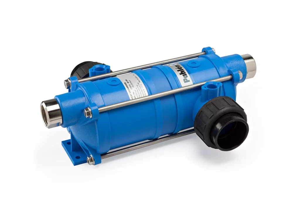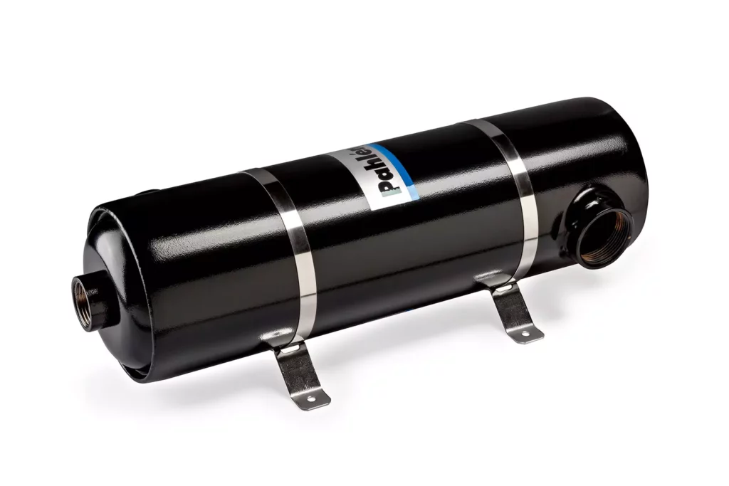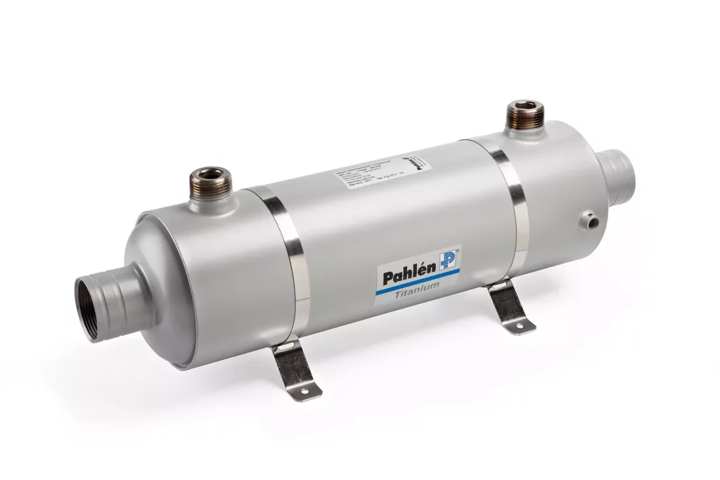 Använd en värmeväxlare för att värma poolen med bergvärme eller fjärrvärme. En värmeväxlares uppgift är att överföra energi (värme) från ett medium till ett annat, från t.ex. el-, ved-, pellets- värmepump eller solfångaranläggning. Alla värmeväxlare kan installeras och anslutas till el-, ved-, pellets- eller oljepanna, värmepump eller solfångaranläggning. Pahléns värmeväxlare finns som rör- och spiralvärmeväxlare och är optimerade för hög kapacitet och lågt tryckfall. Båda typerna har korsflöde, d.v.s. det varma mediet flödar i motsatt riktning mot det kalla, vilket ger maximal effekt. Pahléns värmeväxlare är tillverkade av rostfritt syrafast stål SIS2348, titan eller termoplast.