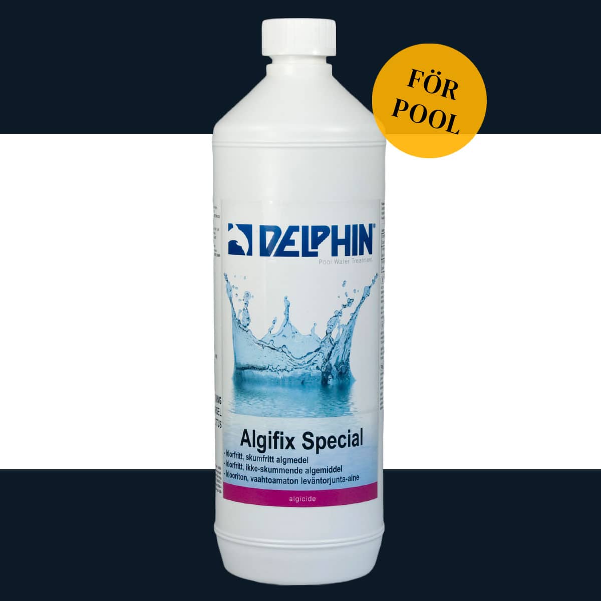 Användning: Blanda ut dosen i en hink eller vattenkanna med vatten. Glöm ej att hälla i vattnet i buteljen först och slutligen Algifix Special. Du får bäst effekt ifall du strilar i lösningen längs poolkanten och låter pumpen gå så att blandningen får cirkulera.