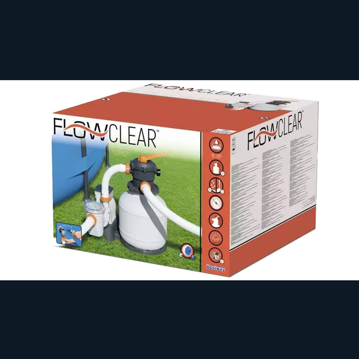 Bestway Flowclear sandfilter håller effektivt poolen ren. En ChemConnect™ Dispenser medföljer. Dispensern upprätthåller en stabil nivå av klor för korrekt kemisk balans, vilket upprätthåller och ger rent och hälsosamt poolvatten. För pooler med en vattenmängd på 1100-54500 liter.