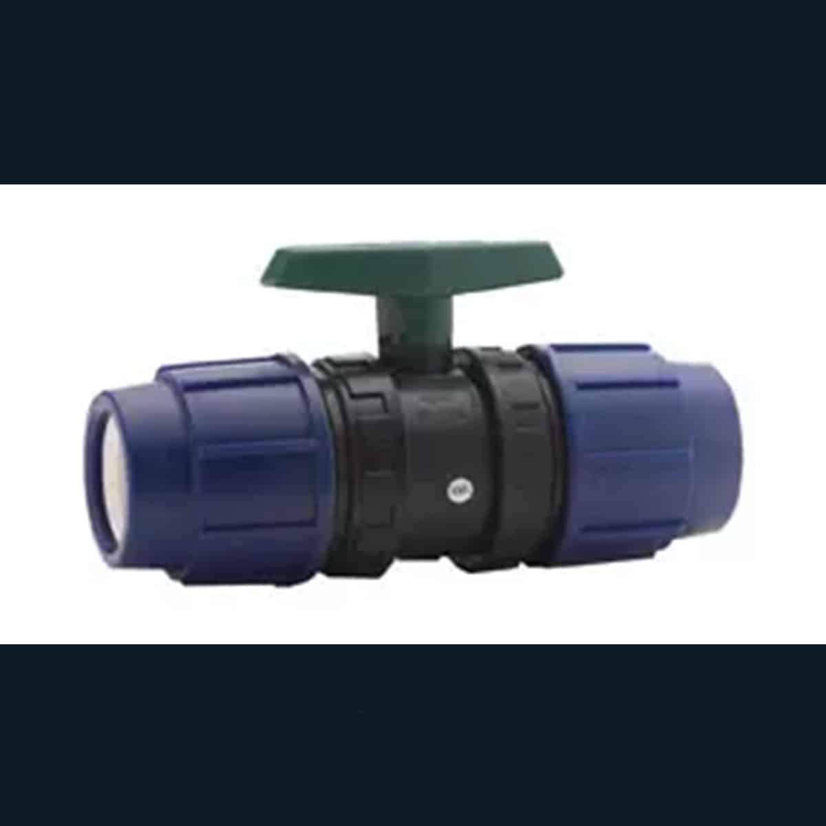 Kulventil i PE för klämmontage på båda sidor.