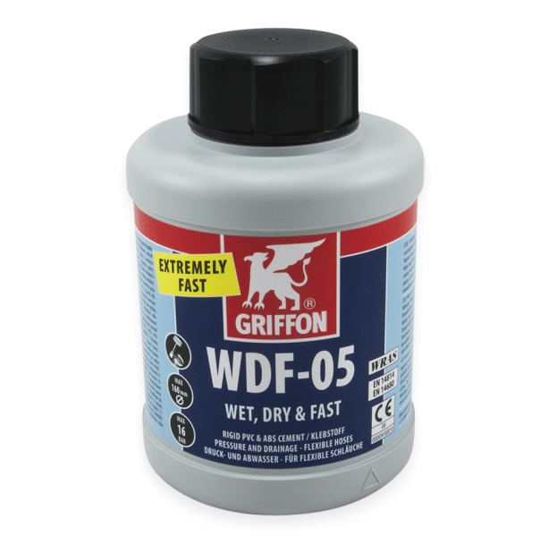 Snabbtorkande lim för PVC-rör och ABS plast från Griffon.
