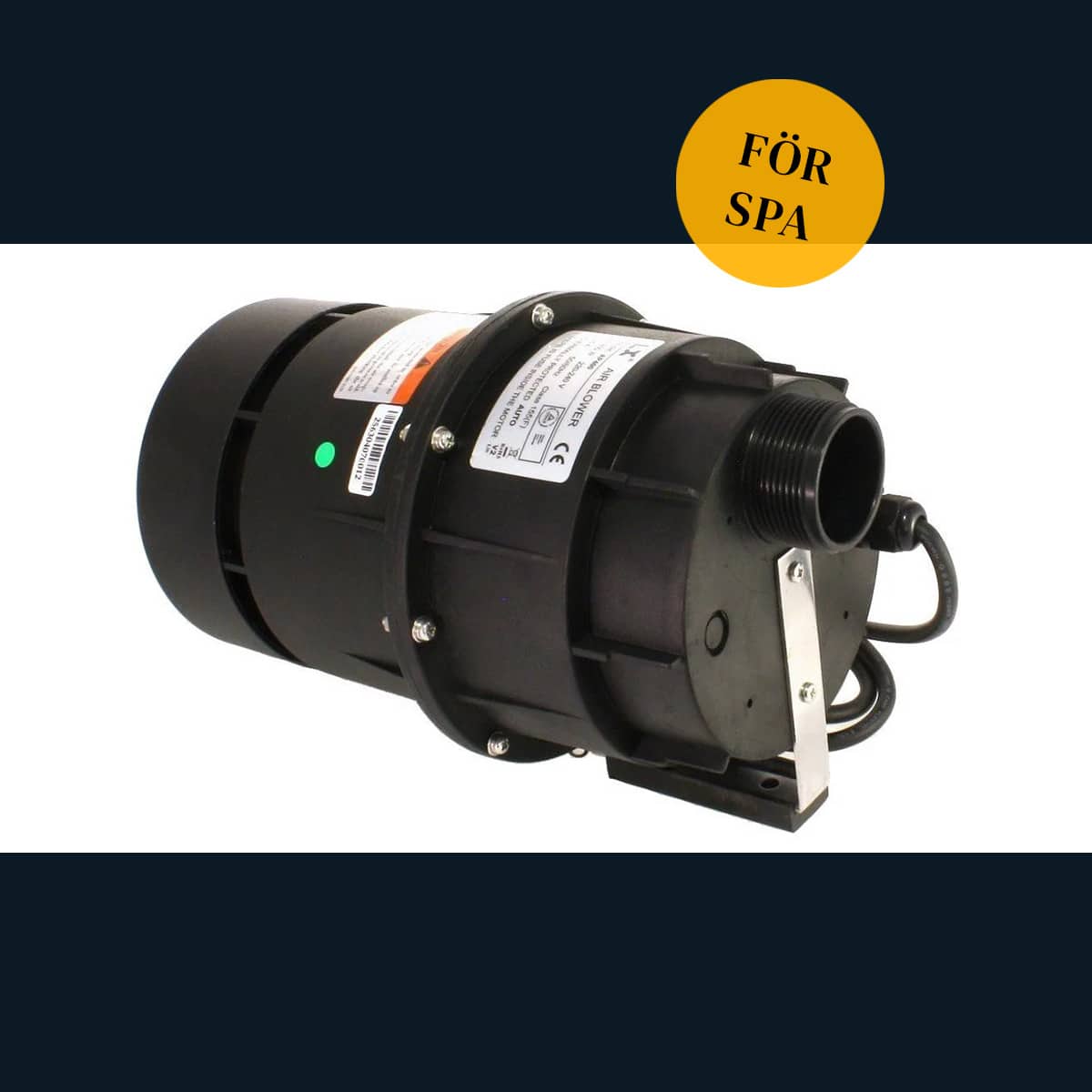 Luftpump konstruerad att användas för bubbelpooler och badtunnor. Den blåser ca. 1 700 liter luft per minut och kan användas för vattendjup 30-90 cm. Effekten är 700 W och den kan styras med t.ex. en tryckbrytare.