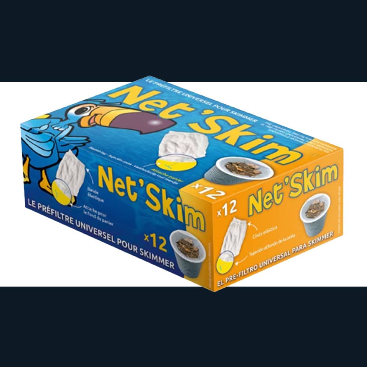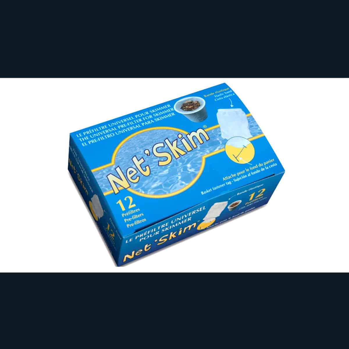 Net’Skim är en elastisk filterpåse som man sätter över skimmerkorgen för att fånga upp löv, pollen och mindre partiklar. Säljes i kartong med 12 st.