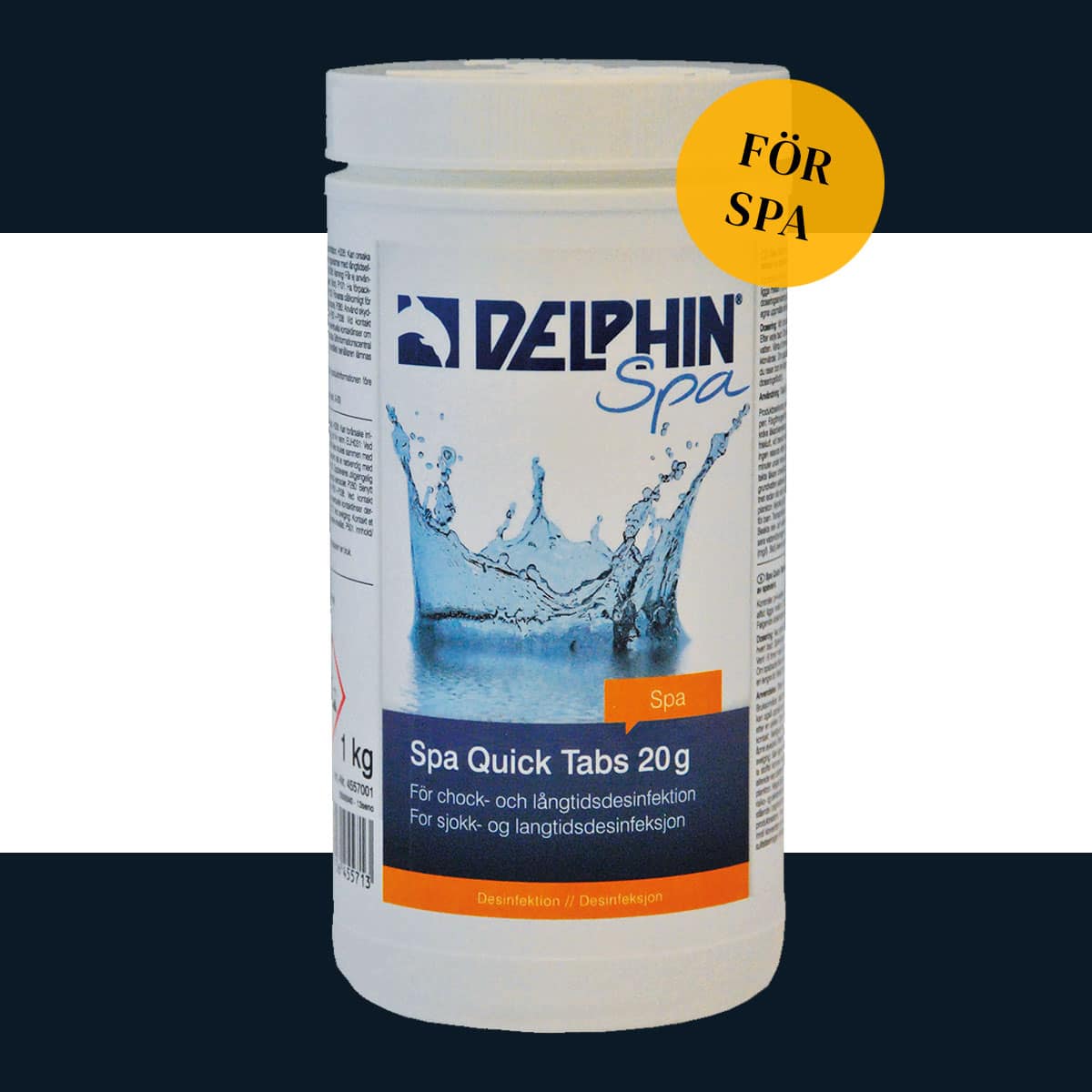 Snabblösande 20g tabletter som används både till kontinuerlig klorering och chockklorering. Delphin Spa Quick Tabs ska med fördel läggas i en flottör så att utsöndringen kan regleras noggrant. Tabletten riskerar annars att smälta i okontrollerad takt vilket kan leda till för höga klorvärden.