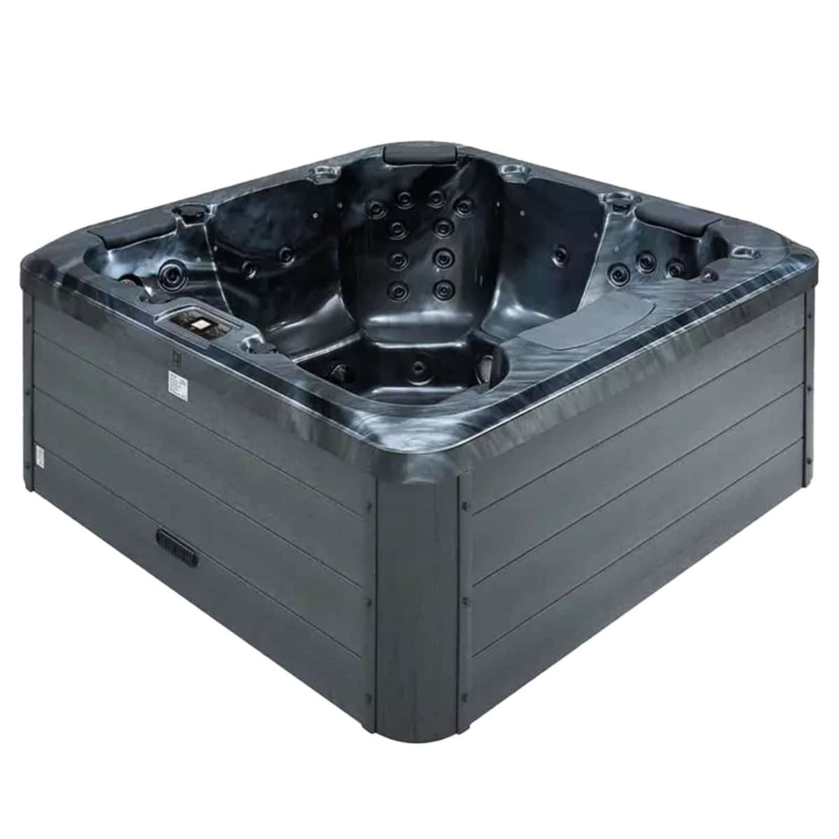 Idun är ett av marknadens djupaste kar. Det är dessutom rymligt med 6 sittplatser varav 2 ligglounger. 36 kraftfulla munstycken samt en nästintill ljudlös pump för cirkulationen ger dig en lika lugn som skön stund i badet.