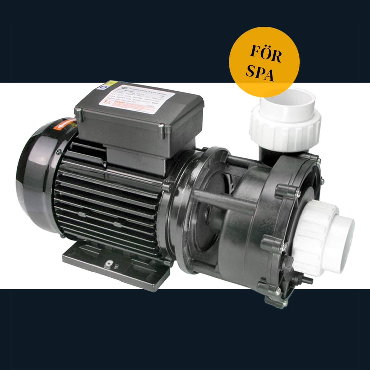 LX Whirlpool WP200-II 2-hastighets pump, 1,5 kW (2HP). Pumpen levereras med 130 cm kabel och med en AMP-kontakt. På insidan av locket finns ett kopplingsschema för att ansluta befintlig kabel om AMP kontakten inte passar, t.ex. på Gecko system. Tekniska specifikationer: