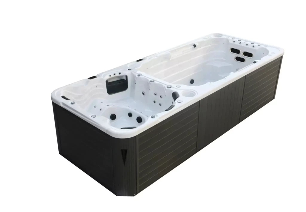 Med ett swimspa får du det bästa av två världar – på minsta möjliga yta och dessutom året runt. Först en pool för skonsam men effektiv simträning, där en reglerbar jetström skapar det motstånd i vattnet som passar din personliga nivå. Oavsett om du satsar aktivt på t.ex. triathlon/simning, är motionär eller behöver mjuk rehabträning. Efter träningen kan du sen flytta över i spadelen och låta samma strömmar och varma bubblor massera och mjuka upp muskler och leder. Givetvis kan poolen användas för avslappnat plask och lek också.